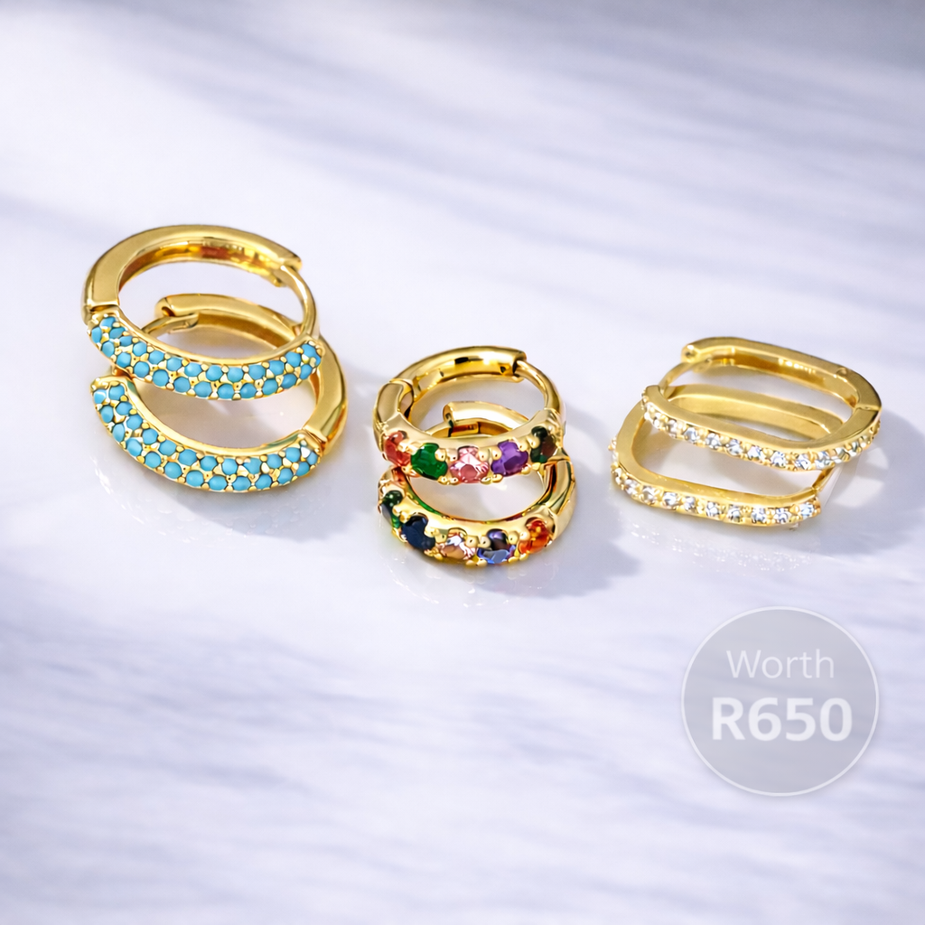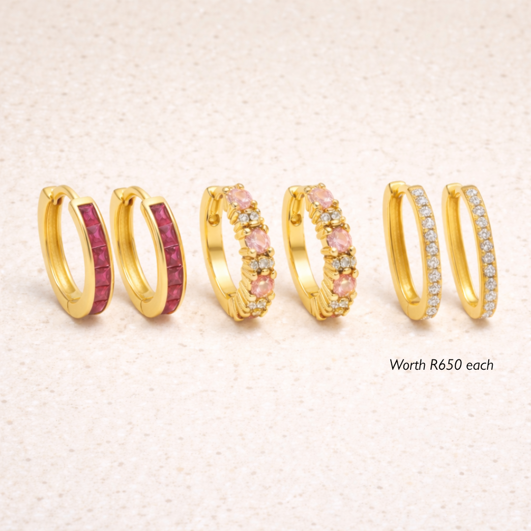 CHOOSE A FREE PAIR OF LIMITED EDITION GOLD HOOPS ON ALL ORDERS OVER R1 500.